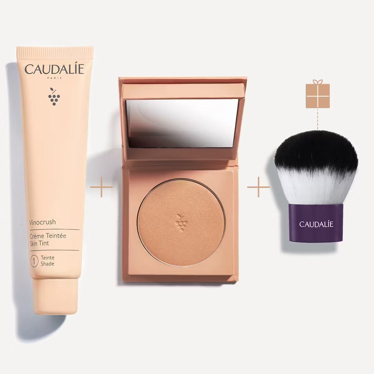 Retrouvez la CC Crème, la Poudre Bronzante Longue Tenue et en cadeau : un pinceau Kabuki offert dans notre trio Vinocrush.